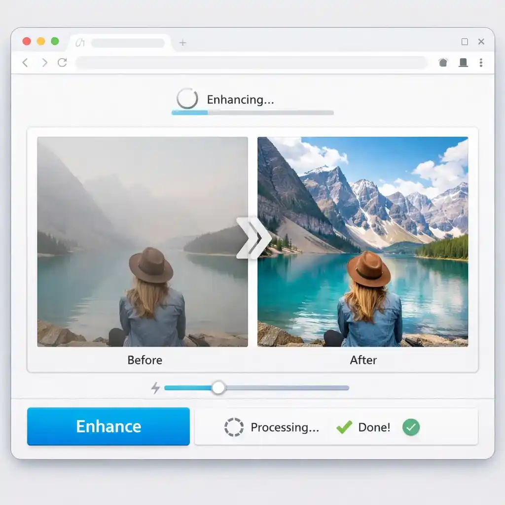 Un miglioratore di foto AI aiuta a migliorare le immagini sfocate, sbiadite, a bassa risoluzione o a basso contrasto con un miglioramento fotografico basato sui prompt. Questa pagina del miglioratore di foto AI si concentra sul ripristino della qualità delle foto online mantenendo semplice il flusso di lavoro.