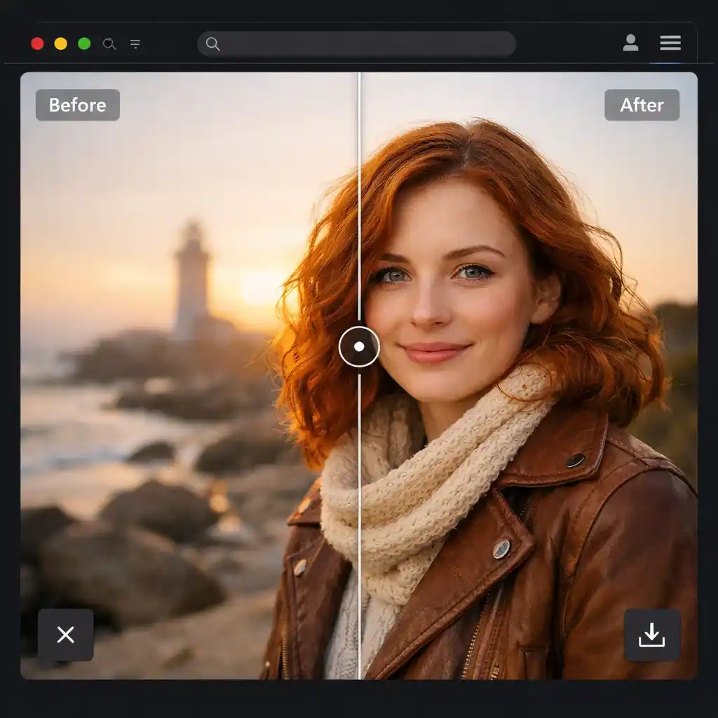 - Nessun download di app richiestoEsegui il tuo flusso di lavoro di miglioramento foto online e passa dal caricamento al risultato in una singola sessione del browser.